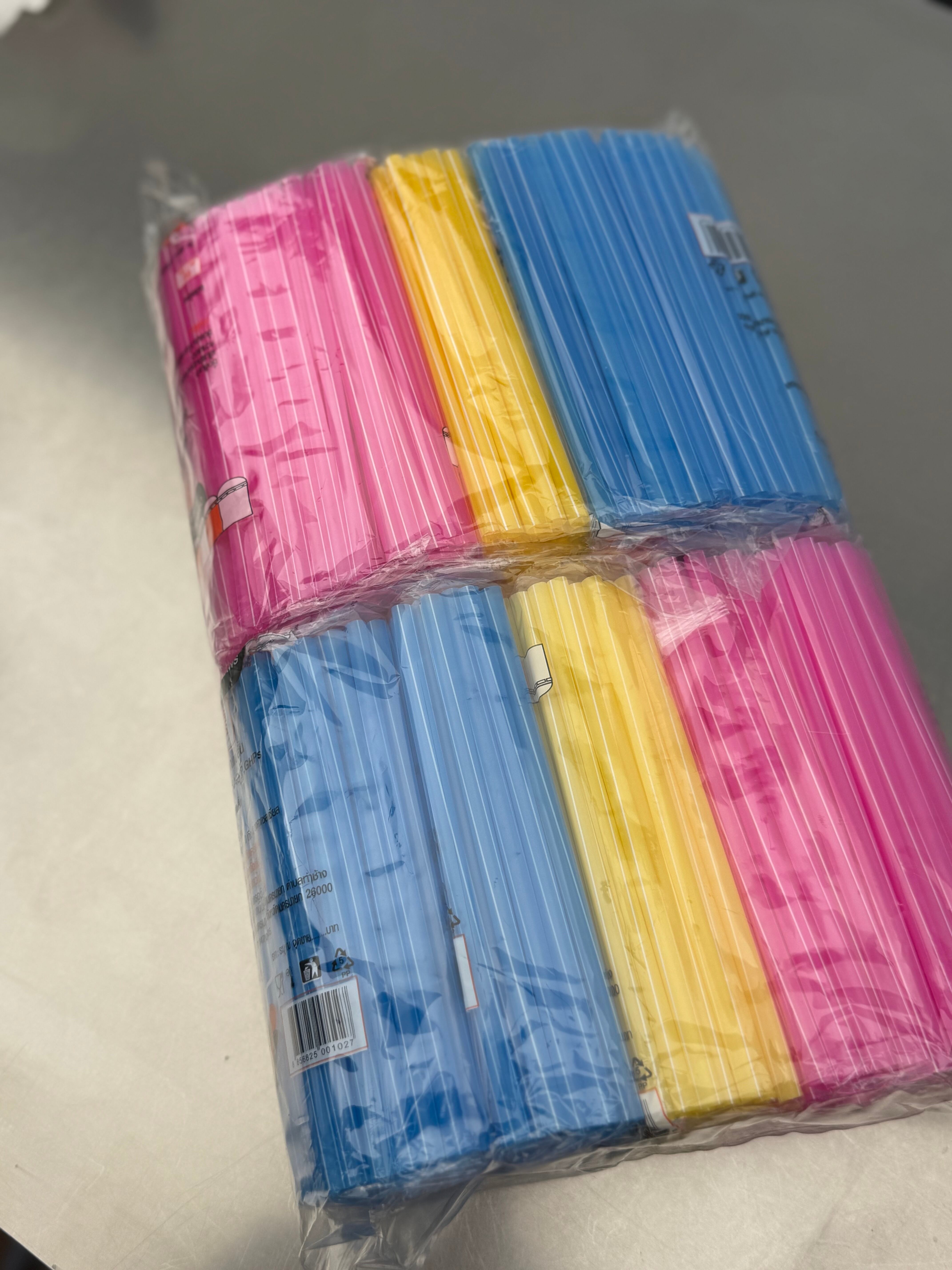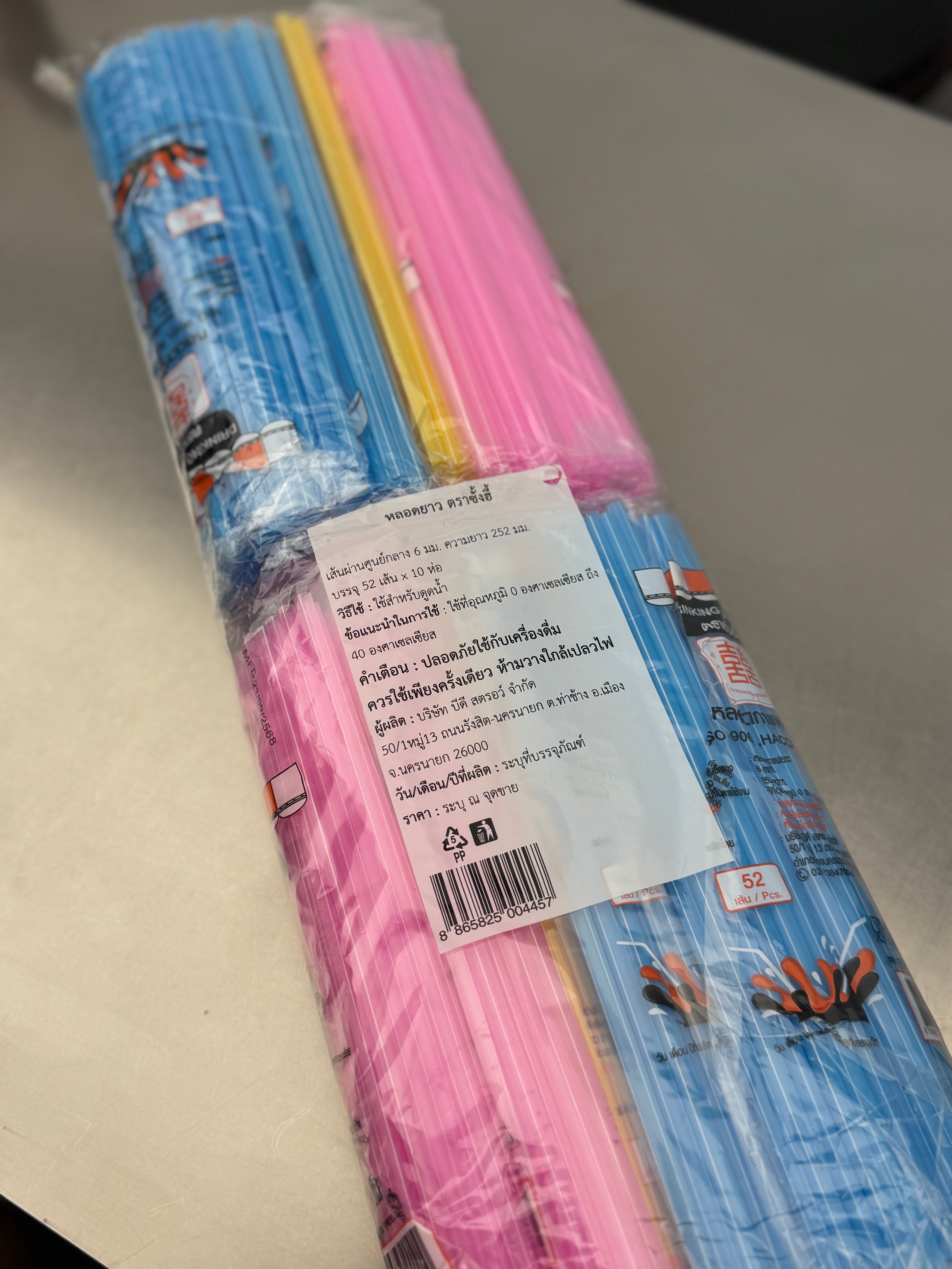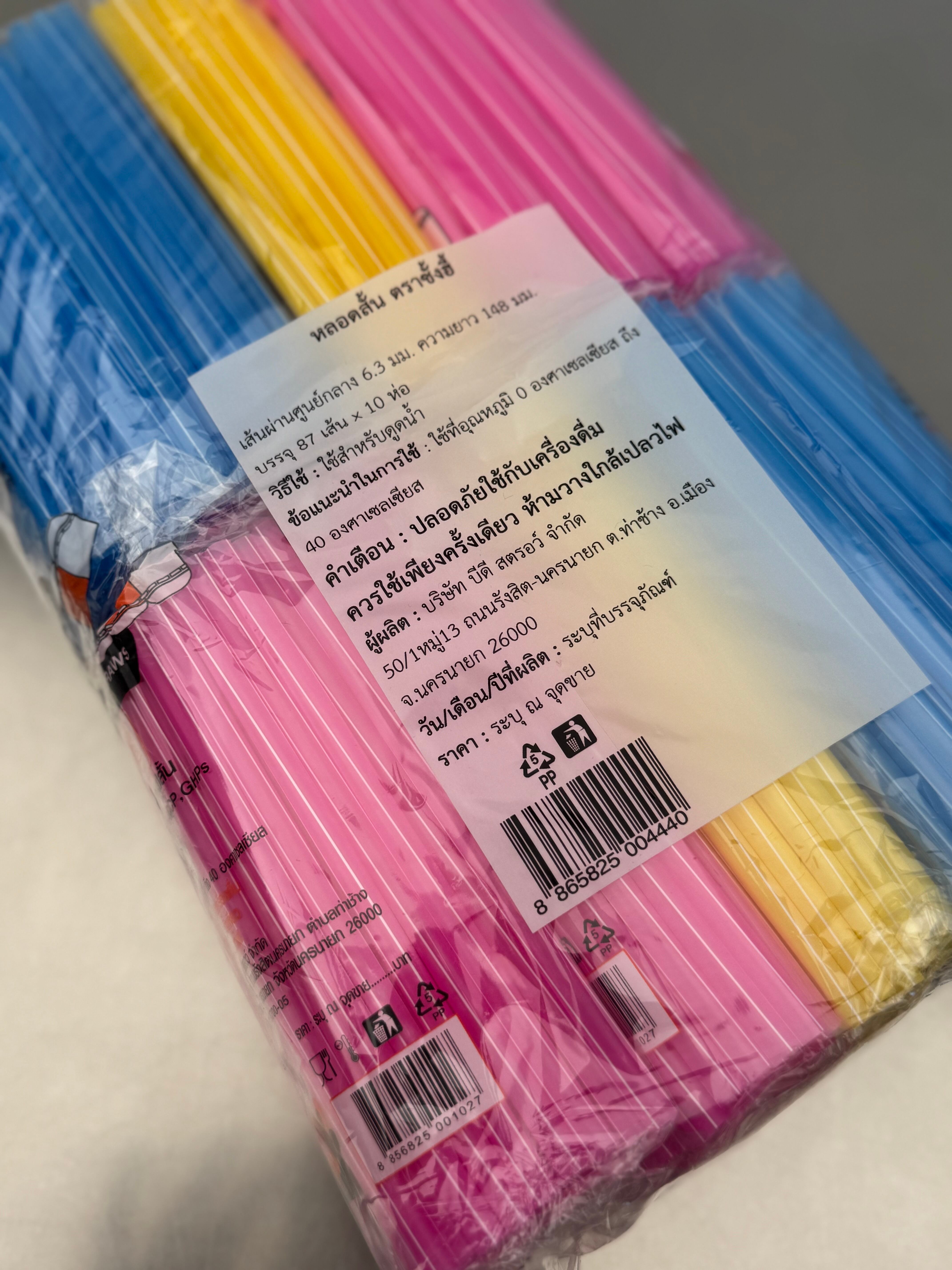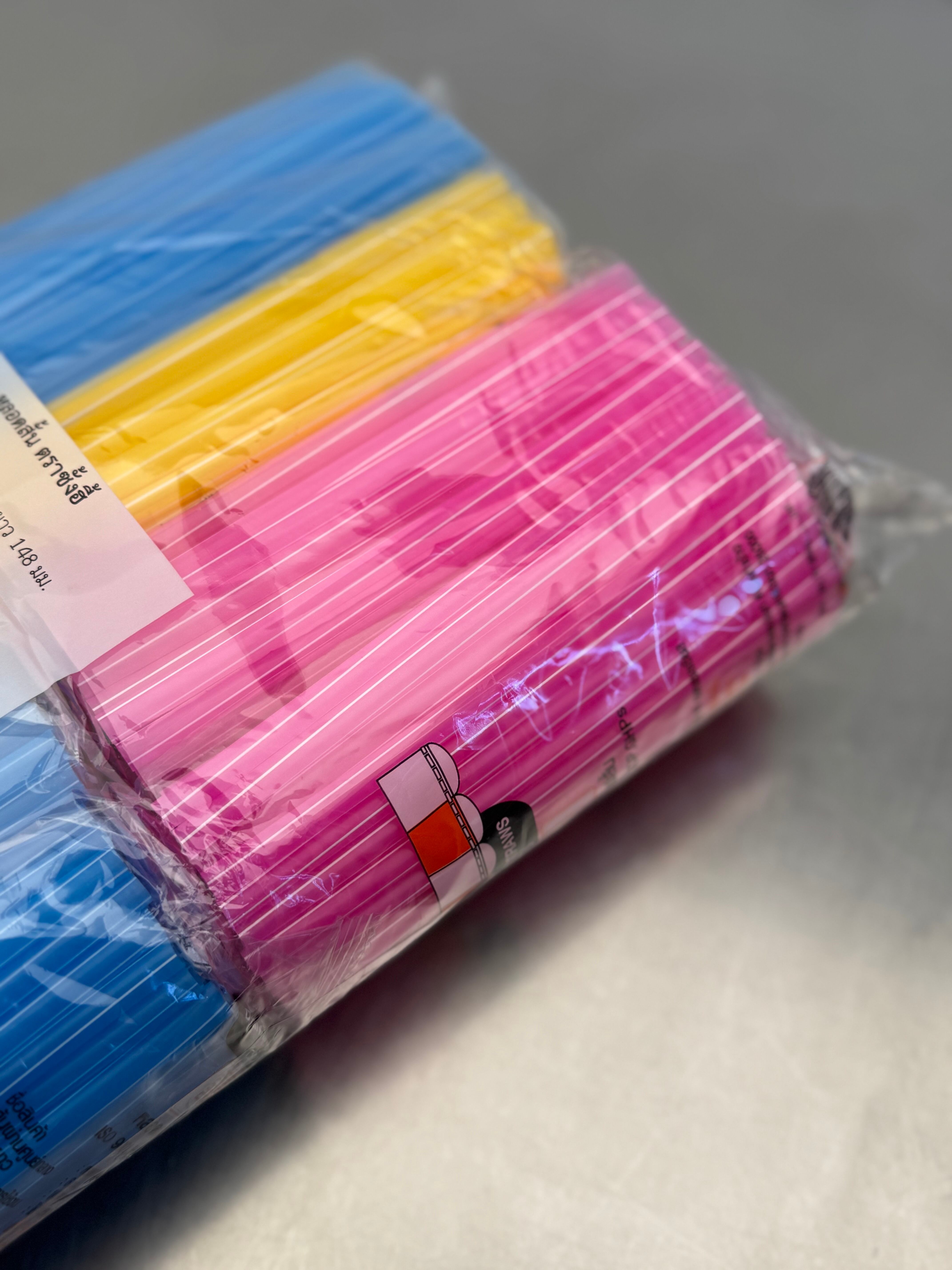 タイのナイトマーケットやローカル食堂でよく使われている、カラフルでポップな 3色ストローセットです。ドリンクスタンドや屋台を思わせる鮮やかな色合いが特徴で、おうちで使うだけで「タイの夜市」の雰囲気を楽しめるアイテム。