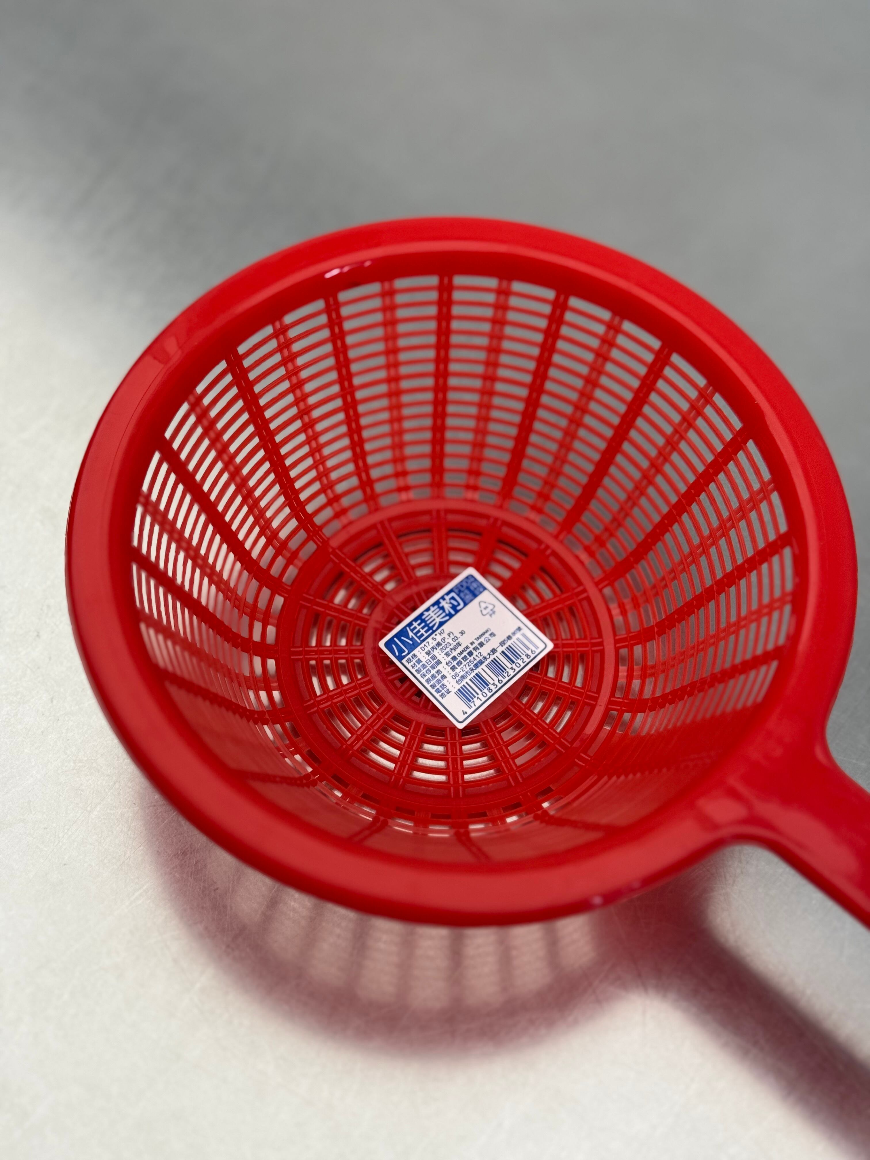 台湾夜市の定番グルメ「鹹酥雞(ジーパイ・揚げ物)」で実際に使われいる、とって付きの赤いざるです。